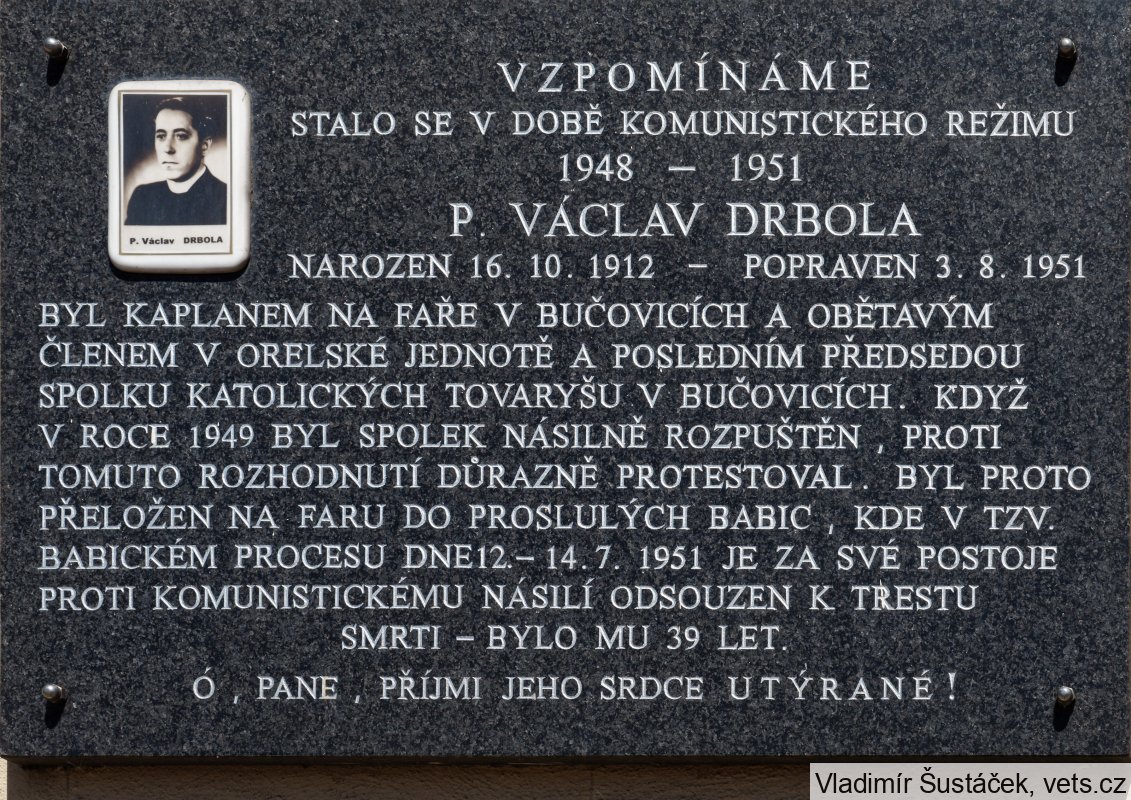 Václav Drbola působil v Bučovicích od roku 1943.jako kaplan. V roce 1950 byl ustanoven administrátorem farnosti v Babicích (okres Třebíč). V roce 1951 byl v souvislosti s tzv. babickým případem odsouzen a popraven.