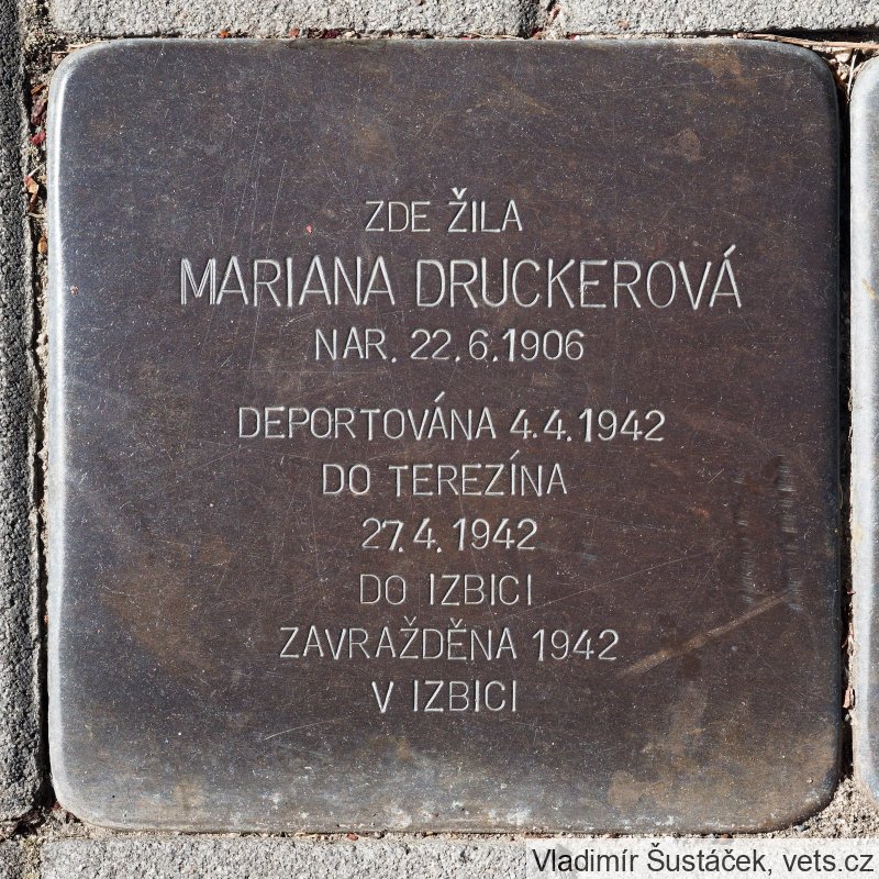 Mariana Druckerová se svou malou dcerkou Monikou byla na přelomu března a dubna 1942 odsunuta do Brna a odtud 4.4. transportem Ah do Terezína, podobně jako většina židovských obyvatel Bučovic. Následoval transport Aq do polské Izbici, kde byly obě jmenované zavražděny.