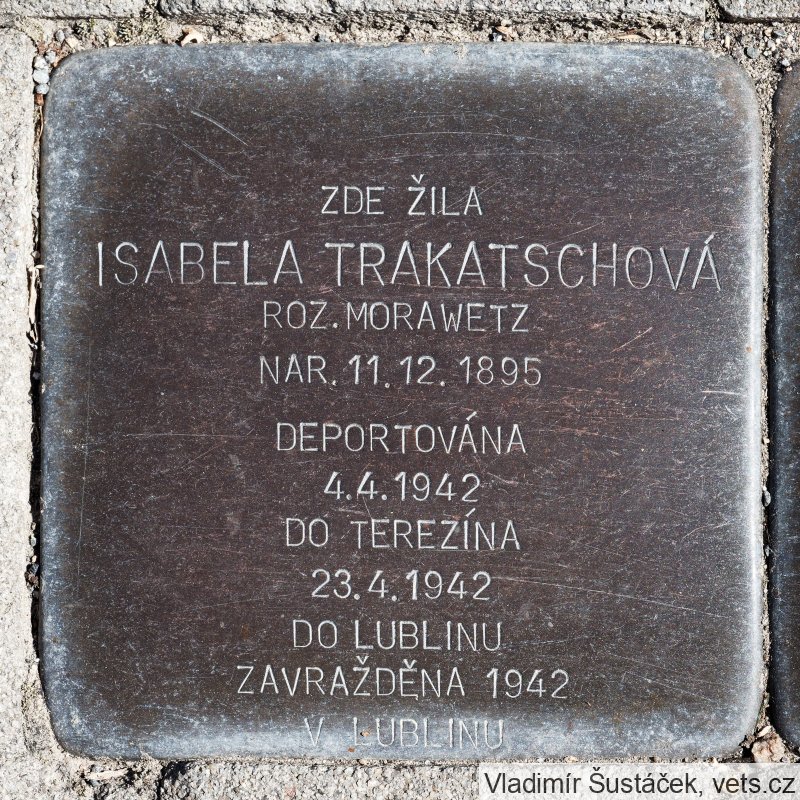 Isabela Trakatschová žila po smrti manžela s dcerou Hedou a synem Josefem v dnes již neexistujícím domku v židovské čtvrti v Bučovicích, kde provozovala malý obchod s galanterií. Tento obchod byl v roce 1941 arizován. Isabela byla na přelomu března a dubna 1942 odsunuta s většinou židovských spoluobčanů do Brna a odtud 4.4. do Terezína, následně pak 23.4. do polského Lublinu, kde byla zavražděna.