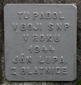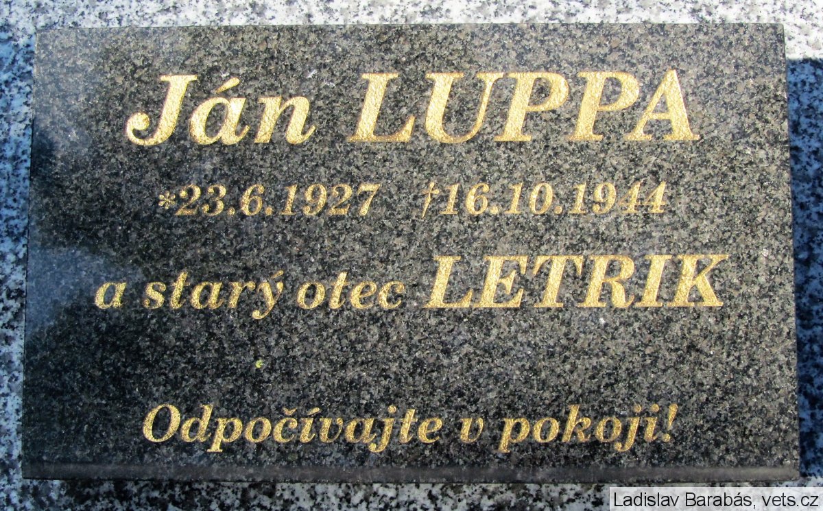 Ján Luppa zahynul počas SNP. V obci má malý pomníček, na ňom má v priezvisku jedno p - Lupa.