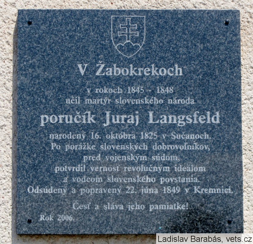 Umístění: Žabokreky, na pravej strane Obecného úradu ŽabokrekyNápis: