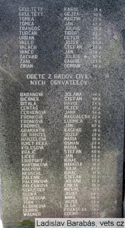 ING. LUDVIK MACH *1897-†1945, JULIUS SZABO -†1944, NEZNÁMY, TOMÁŠ MURÁR *1914-†1944, ANDREJ LACKOVIČ *1906-†1944, JÁN PITTNER *1890-†1944, MÁRIA ILEŠIČOVÁ *1912-†1944, JOZEF ILEŠIČ *1907-†1944, JOZEF ŠUCHO *1908-†1945, HUGO ŘEBÍK *1895-†1944, FRANTIŠEK PAČ *1902-†1944