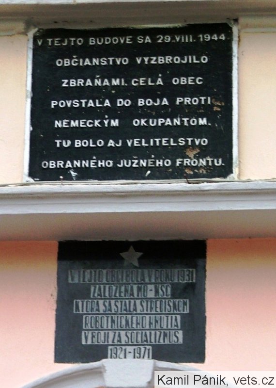 Umístění: Klenovec, Námestie Karola Salvu 1, na budove radniceV TEJTO BUDOVE SA 29.VIII.1944