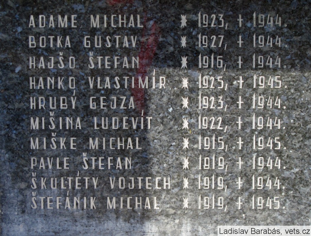 PAVLE ŠTEFAN, ŠKULTÉTY VOJTECH, HRUBY GEJZO, ŠTEFANIK MICHAL, MIŠKE MICHAL, MIŠINA LUDVIK. HANKO VLASTIMIR, BOTKA GUSTAV, HAJŠO ŠTEFAN