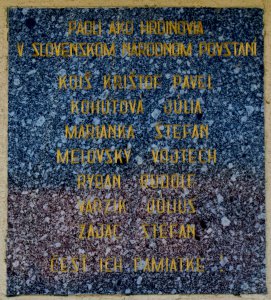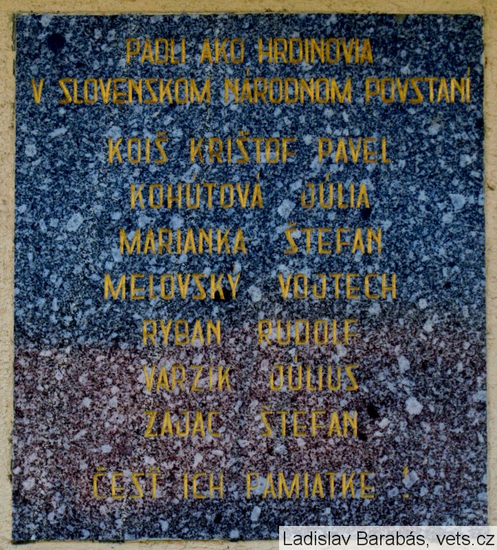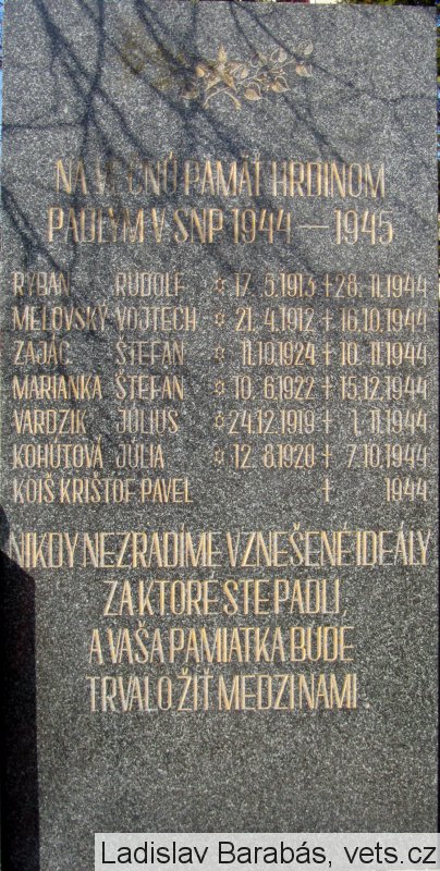 RYBAN RUDOLF *17.5.1913 †28.11.1944, MELOVSKÝ VOJTECH *21.4.1912 †10.10.1944, ZAJÁC ŠTEFAN *11.10.1924 †10.11.1944, MARIANKA ŠTEFAN *10.6.1922 †15.12.1944, VARDZIK JÚLIUS *24.12.1919 †1.11.1944, KOHÚTOVÁ JÚLIA *12.8.1920 †7.10.1944, KOIŠ KRIŠTOF PAVOL †1944