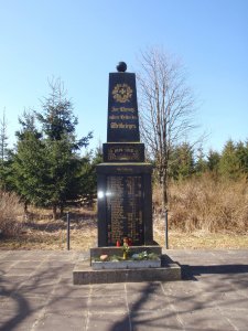 Umístění: Dolina, přibližně2 km na cestě ze Žst. Měděnec k vodní nádrži Přísečnice po levé straně,Nápis: