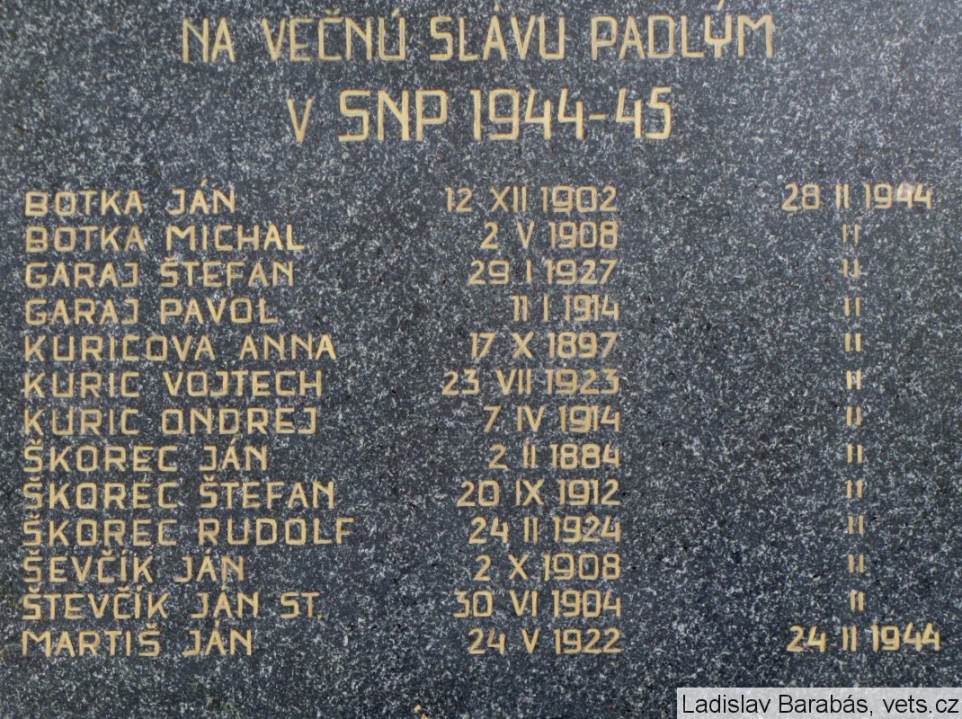 Poznámka: NA VEČNÚ SLÁVU PADLÝM