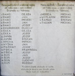 Umístění: Nitrica, pred vchodom do kaplnky v časti RačiceNápis: