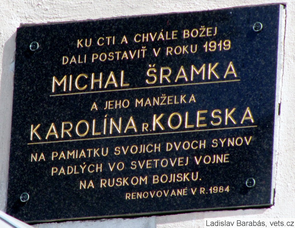 Kaplnku dali postaviť rodičia na pamiatku synov (Jozef a Michal Šramka) padlých v 1. svetovej vojne.