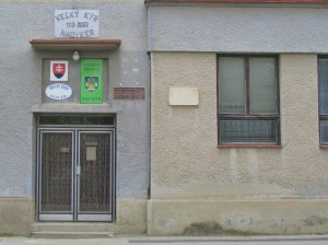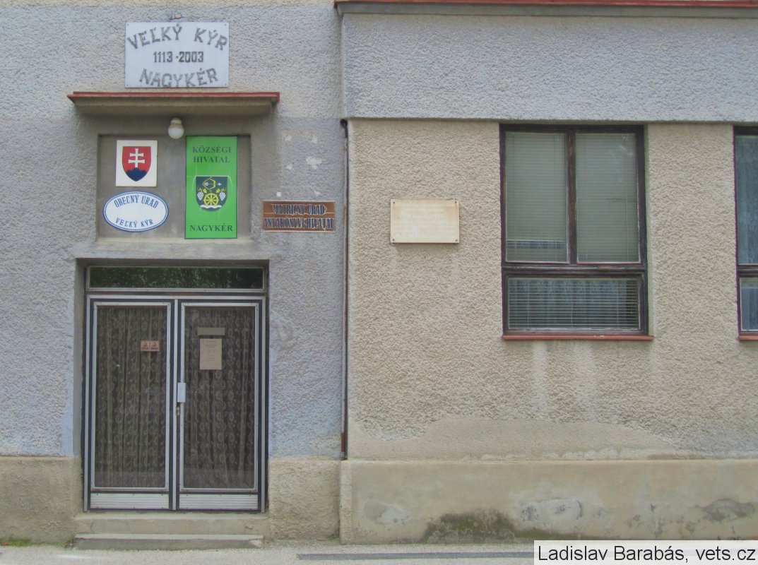 Umístění: Veľký Kýr, Námestie sv. Jána, na budove Obecného úradu Veľký KýrNápis:
