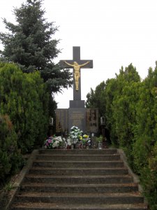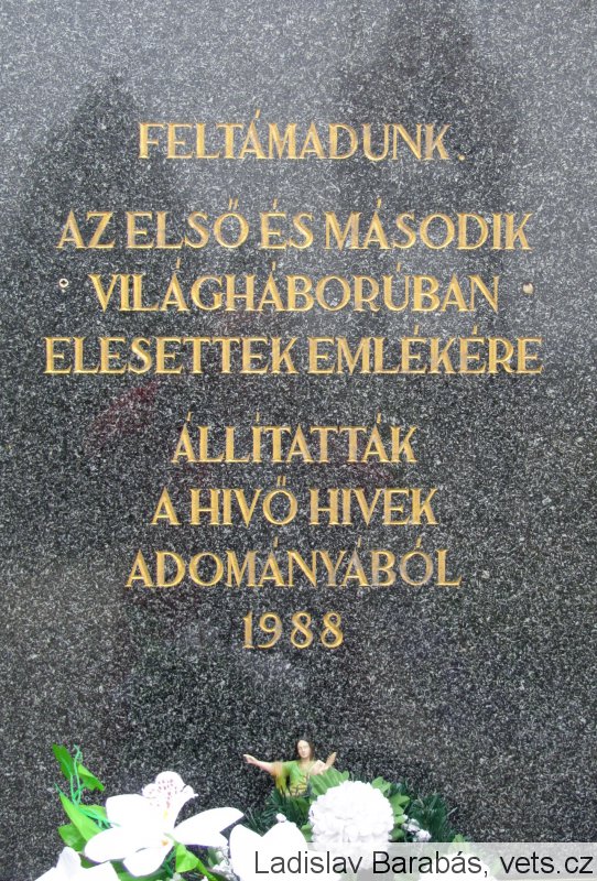 Umístění: Veľký Kýr, Staničná, na cintoríne, vľavo od súsošia kalvárieNápis: