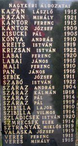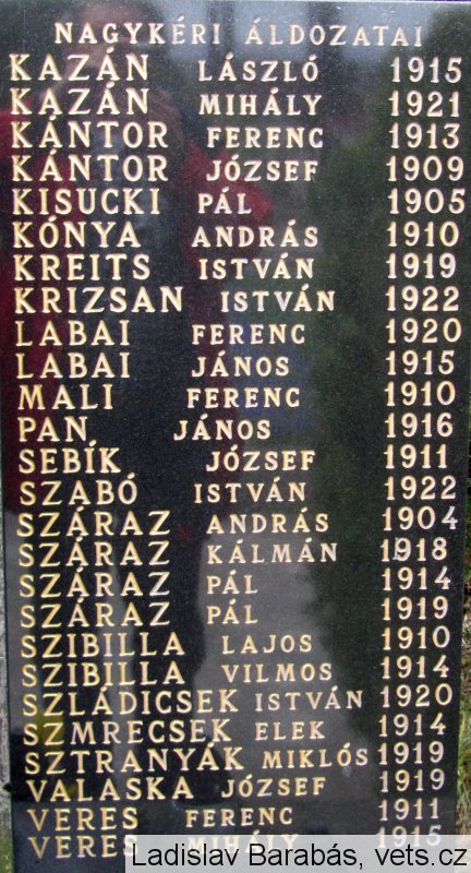 KAZÁN LÁSZLÓ 1915, KAZÁN MIHÁLY 1921, KÁNTOR FERENC 1913, KÁNTOR JÓZSEF 1909, KISUCKI PÁL 1905, KÓNYA ANDRÁS 1910, KREITS ISTVÁN 1919, KRIZSAN ISTVÁN 1922, LABAI FERENC 1920, LABAI JÁNOS 1915, MALI FERENC 1910, PAN JÁNOS 1916, SEBÍK JÓZSEF 1911, SZABÓ ISTVÁN 1922, SZÁRAZ ANDRÁS 1904, SZÁRAZ KÁLMÁN 1918, SZÁRAZ PÁL 1914, SZÁRAZ PÁL 1919, SZIBILLA LAJOS 1910, SZIBILLA VILMOS 1914, SZLÁDICSEK ISTVÁN 1920, SZMRECSEK ELEK 1914, SZTRANYÁK MIKLÓS 1919, VALASKA JÓZSEF 1919, VERES FERENC 1911, VERES MIHÁLY 1915