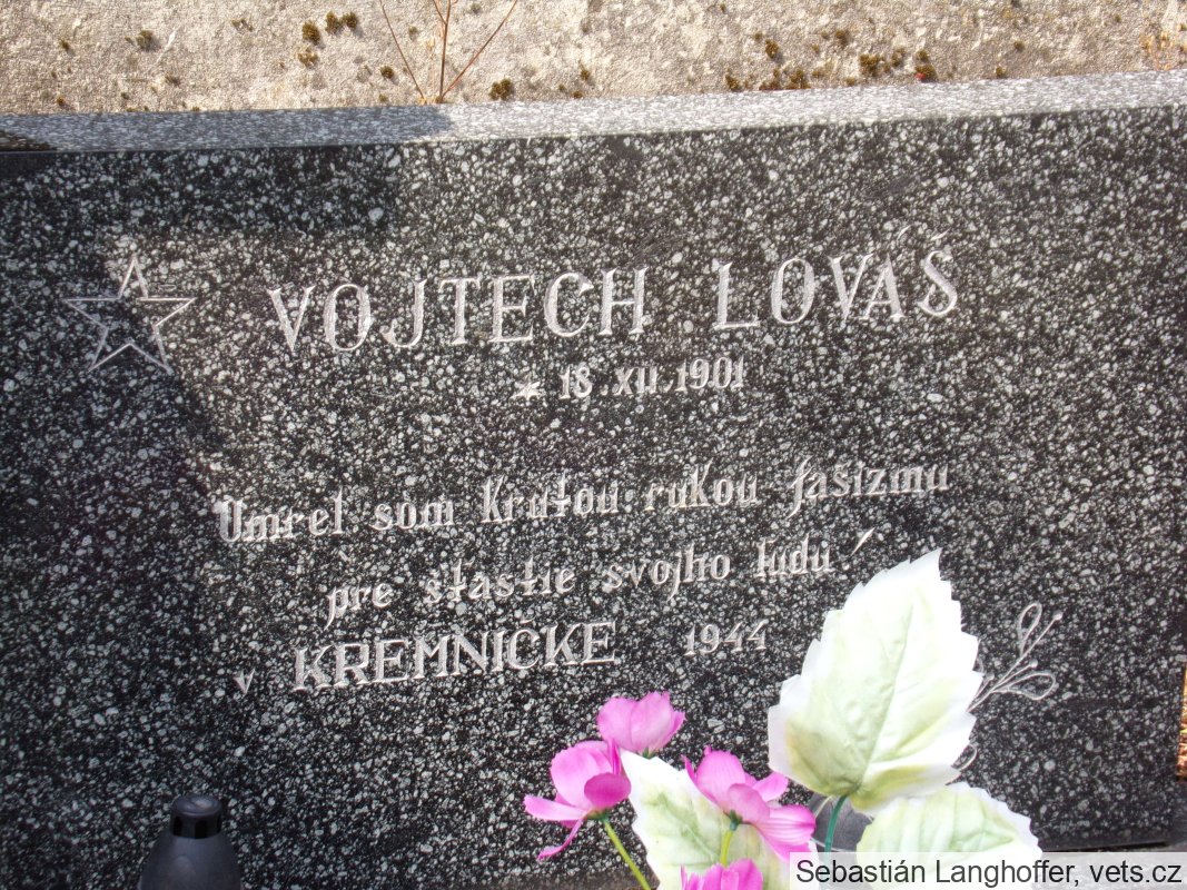 Vojtech Lováš (Lovas ?) bol príslušníkom ozbrojených síl, 19.11.1944 bol Sicherheitsdienstom vzatý do väzby vo väznici Krajského súdu v Banskej Bystrici a 19.12.1944 zastrelený v Kremničke.