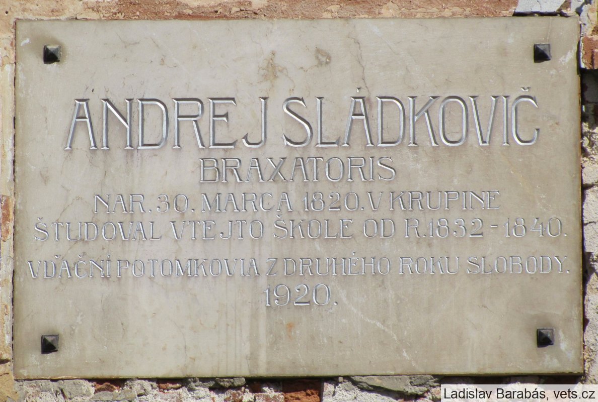Andrej Sládkovič (pôv. Braxatoris) (30.3.1820 Krupina – 20.4.1872 Banská Bystrica-Radvaň) básnik a evanjelický kňaz. Od mladosti bol aktívny účastník národného spolkového života. Po príchode do Bratislavy patril k aktívnym členom Štúrovej družiny. V roku 1849 bol za podporu slovenského povstania na úteku zaistený maďarskými gardistami a poľným vojenským súdom odsúdený na trest smrti. Vykonaniu rozsudku zabránil len rýchly postup vojsk J. Jelačića. V dňoch 6. a 7.6.1861 sa zúčastnil memorandového zhromaždenia Matice slovenskej v Martine.