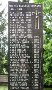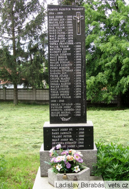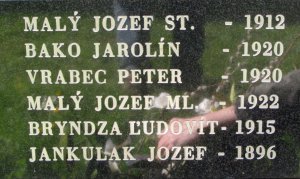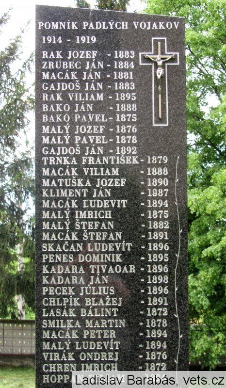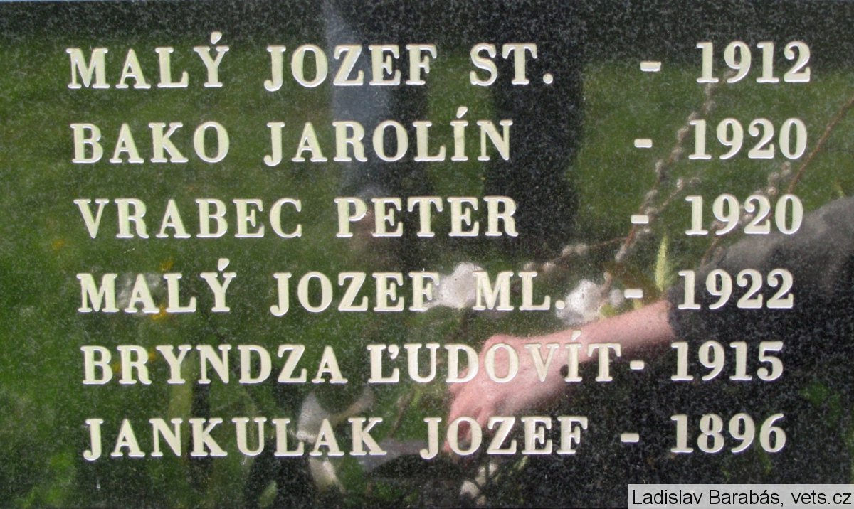 RAK JOZEF – 1883, ZRUBEC JÁN – 1884, MACÁK JÁN – 1881, GAJDOŠ JÁN – 1883, RAK VILIAM – 1895, BAKO JÁN – 1888, BAKO PAVEL – 1875, MALÝ JOZEF – 1876, MALÝ PAVEL – 1878, GAJDOŠ JÁN – 1892, TRNKA FRANTIŠEK – 1879, MACÁK VILIAM – 1888, MATUŠKA JOZEF – 1890, KLIMENT JÁN – 1887, MACÁK ĽUDEVIT – 1894, MALÝ IMRICH – 1875, MALÝ ŠTEFAN – 1882, MACÁK ŠTEFAN – 1891, SKAČAN LUDEVÍT – 1896, PENES DOMINIK – 1895, KADARA TIVAOAR – 1896, KADARA JÁN – 1898, PECEK JÚLIUS – 1896, CHLPÍK BLAŽEJ – 1891, LASÁK BÁLINT – 1872, SMILKA MARTIN – 1878, MACÁK PETER – 1894, MALÝ LUDEVÍT – 1894, VIRÁK ONDREJ – 1876, CHREN IMRICH – 1872, HOPPAN VILIAM – 1894
