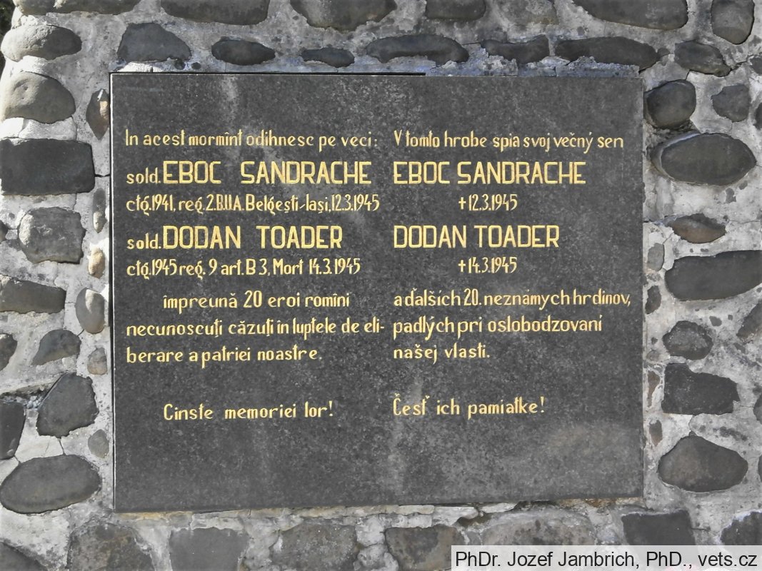 Náhrobník bol postavený ako pomník padlým rumunským vojakom pri oslobodzovaní obce. Vojaci sú pochovaní na Ústrednom vojenskom cintoríne vo Zvolene.