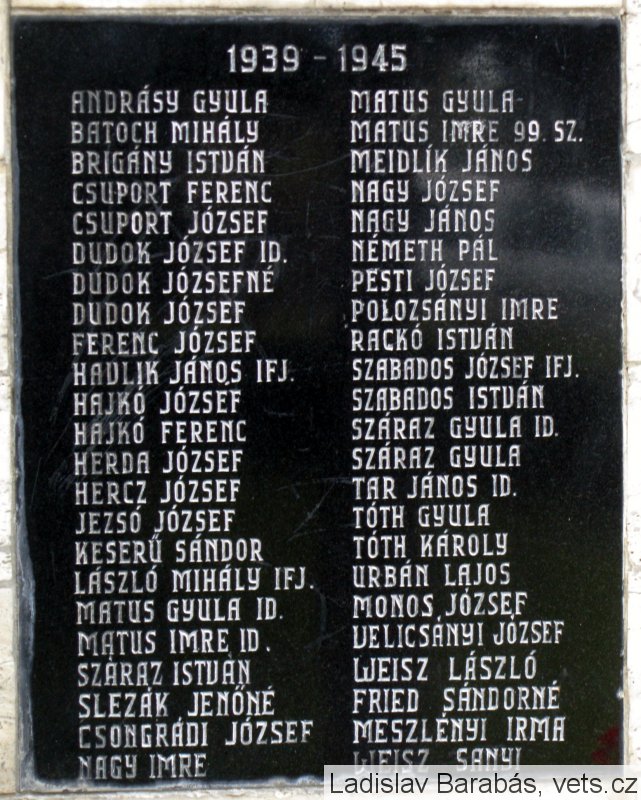ANDRÁSY GYULA, BATOCH MIHÁLY, BRIGÁNY ISTVÁN, CSUPORT FERENC, CSUPORT JÓZSEF, DUDOK JÓZSEF ID., DUDOK JÓZSEFNÉ, DUDOK JÓZSEF, FERENCZ JÓZSEF, HAVLIK JÁNOS IFJ., HAJKÓ JÓZSEF, HAJKÓ FERENC, HERDA JÓZSEF, HERCZ JÓZSEF, JEZSÓ JÓZSEF, KESERŰ SÁNDOR, LÁSZLÓ MIHÁLY IFJ., MATUS GYULA ID., MATUS IMRE ID., SZÁRAZ ISTVÁN, SLEZÁK JENŐNÉ, CSONGRÁDI JÓZSEF, NAGY IMRE, MATUS GYULA, MATUS IMRE 99. SZ., MEIDLÍK JÁNOS, NAGY JÓZSEF, NAGY JÁNOS, NÉMETH PÁL, PESTI JÓZSEF, POLOZSÁNYI IMRE, RALKÓ ISTVÁN, SZABADOS JÓZSEF IFJ., SZABADOS ISTVÁN, SZÁRAZ GYULA ID., SZÁRAZ GYULA, TAR JÁNOS ID., TÓTH GYULA, TÓTH KÁROLY, URBÁN LAJOS, MONOS JÓZSEF, VELICSÁNYI JÓZSEF, WEISZ LÁSZLÓ, FRIED SÁNDORNÉ, MESZLÉNYI IRMA, WEISZ SANYI