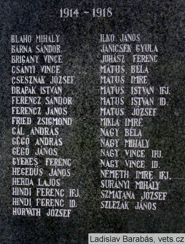 BLAHO MIHÁLY, BARNA SÁNDOR, BRIGANY VINCE, CSÁNY VINCE, CSESZNAK JÓZSEF,DRAPÁK ISTVÁN, FERENCZ SÁNDOR, FERENCZ JÁNOS, FRIED ZSIGMOND, GÁL ANDRÁS, GEGŐ JÁNOS, GYEKES FERENC, HEGEDŰS JÁNOS, HERDA LAJOS, HINDI FERENC IFJ., HINDI FERENC ID., HORVÁTH JÓZSEF, ILKO JÁNOS, JANICSEK GYULA, JUHÁSZ FERENC, MATUS BÉLA, MATUS IMRE, MATUS ISTVÁN IFJ., MATUS ISTVÁN ID., MATUS JÓZSEF, MIKLA IMRE, NAGY BÉLA, NAGY MIHÁLY, NAGY VINCE IFJ., NAGY VINCE ID., NÉMETH IMRE IFJ., SURÁNYI MIHÁLY, SZMATANA JÓZSEF, SZLEZÁK JÁNOS
