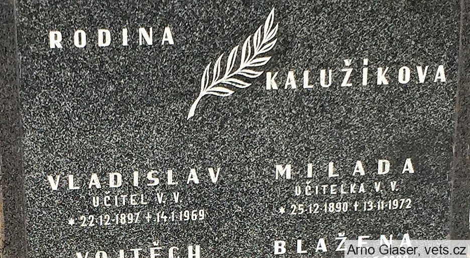 Vladislav Kalužík: *22.12.1897 Hrušky, č. p. 29, okr. Hodonín (dnes Břeclav), do rodiny čtvrtníka (majitele velikosti pozemku) Michala Kalužíka a Anny, roz. Košutové. Příslušný tamtéž. Svobodný, student. RU armáda: Gefr., IR. Nr. 3. Zajetí: 10.6.1916 Bučač. Podání přihlášky do legií: 1.11.1916 Monastyr. Zařazení do legií: 17.4.1917. Legie: Čs. legie v Rusku. Jednotka v době zařazení: záložní prapor, hodnost: vojín. Poslední útvar v legiích: 4. střelecký pluk, hodnost: desátník. Konec v legiích: 2.12.1920, demobilizován. 19.8.1933 se oženil v Hodoníně s Miladou, roz. Štolbovou. Tehdy bydliště Poštorná č. p. 259, zaměstnáním učitel.