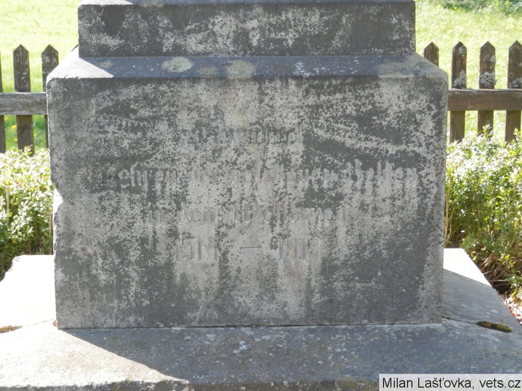 Seznam obětí dle portálu CEVH MO ČR: Josef Baas 25.7.1915 Rusko, Wenzl Baas 21.6.1915 Rusko, Franz Baier 7.7.1916 Srbsko, Johann Berliner 5.11.1918 Srbsko, Franz Biermaier 24.5.1918 Itálie, Andreas Braun 25.11.1917 Itálie Johan Damler 3.12.1915 Itálie, Anton Dürl 20.3.1915 Rusko, Johann Eckert 18.10.1914 Srbsko, Andreas Eckert 24.2.1915 Rusko, A. Fleisner 9.7.1917 Itálie, Anton Fleisner 14.10.1918 Itálie, Johann Fleisner 27.10.1914 Srbsko, Josef Fleisner 18.5.1917 Itálie, Georg Gühl15.6.1915 Srbsko, Georg Gühl 28.1.1917 Itálie, Georg Hamler 1.1.1918 Itálie, Anton Klärner 6.6.1916 Itálie, Johann Reidenrich 9.1.1915 Srbsko, Andreas Sollner 5.12.1914 Srbsko, Josef Stich 27.5.1918 Itálie