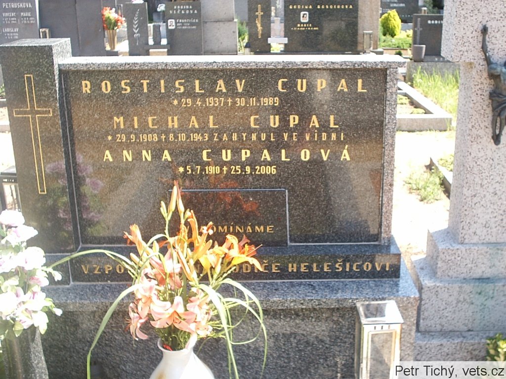 Michal Cupal byl popraven ve Vídni za spolupráci s parašutisty, konkrétně za kontakt s jeho bratrem Ludvíkem Cupalem z paraskupiny TIN. Bude se jednat o kenotaf, protože obvykle se ostatky popravených do vlasti nevracely.