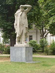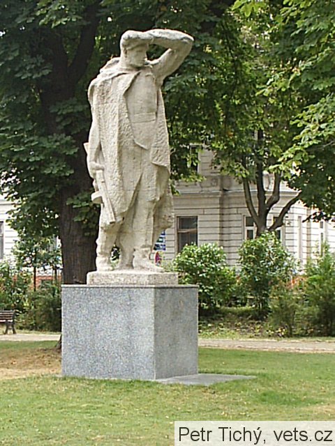 původně stála socha na vysokém pylonu na náměstí T. G. Masaryka