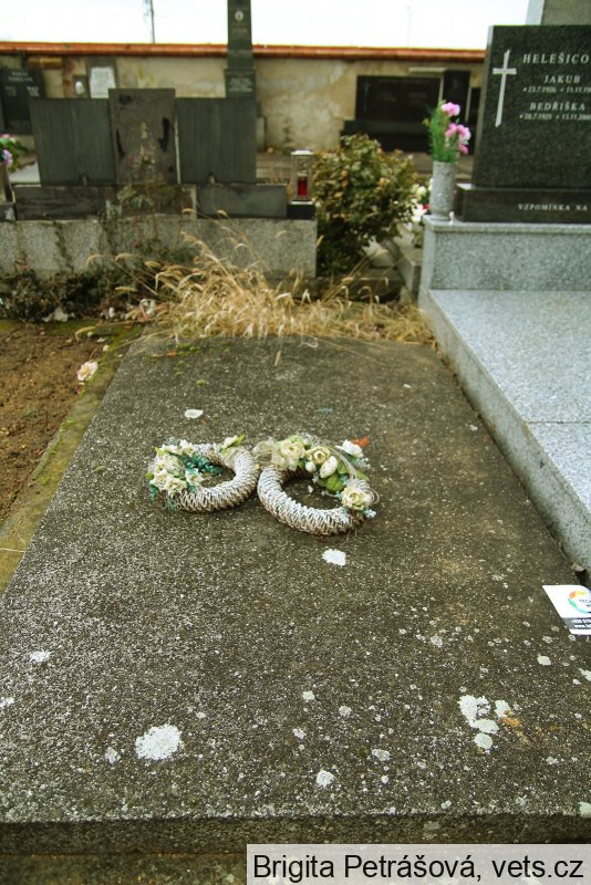 Hrob zrušen (již využívá jiná rodina), datum pohřbu (8.7.1952) a místo uložení ostatků určeno dle záznamů pohřební služby Kelemen, s.r.o.