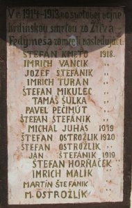 ŠTEFAN KMEŤO 1918., IMRICH VANCIK ", JOZEF ŠTEFÁNIK ", IMRICH TURAN ", ŠTEFAN MIKULEC ", TAMÁŠ ŠULKA ", PAVEL PEČIMÚT ", ŠTEFAN ŠTEFÁNIK ", MICHAL JUHÁS 1919., ŠTEFAN OSTROŽLIK 1920., ŠTEFAN OSTROŽLIK ", JÁN ŠTEFÁNIK 1919., ŠTEFAN HORŇAČEK ", IMRICH MALÍK ", MARTIN ŠTEFÁNIK ", M. OSTROŽLÍK "