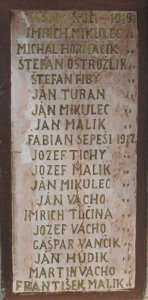 ALOJZ KOČI 1916 ", IMRICH MIKULEC ", MICHAL HORŇÁČIK ", ŠTEFAN OSTROŽLIK ", ŠTEFAN FIBY ", JÁN TURAN ", JÁN MIKULEC ", JÁN MALIK ", FABIAN SEPEŠI 1917, JOZEF TICHY ", JOZEF MALIK ", JÁN MIKULEC ", JÁN VACHO ", IMRICH TLČINA ", JOZEF VACHO ", GAŠPAR VANČIK ", JÁN HÚDIK ", MARTIN VACHO ", FRANTIŠEK MALIK