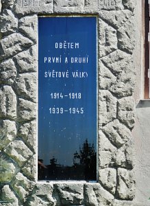 Umístění: Štrbice, asi sto metrů od kraje obce vlevo při příjezdu ze silnice č. 258Nápis:
