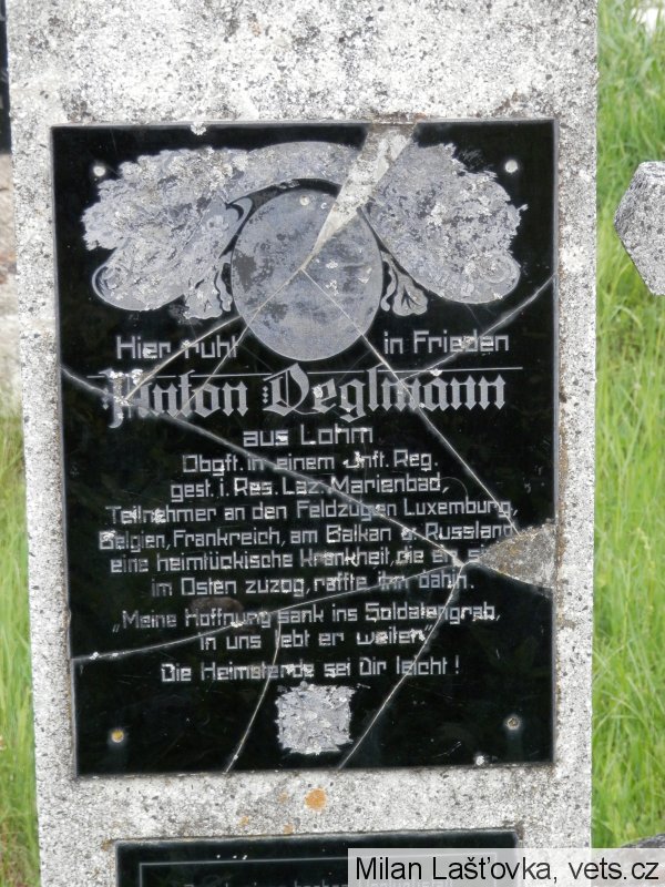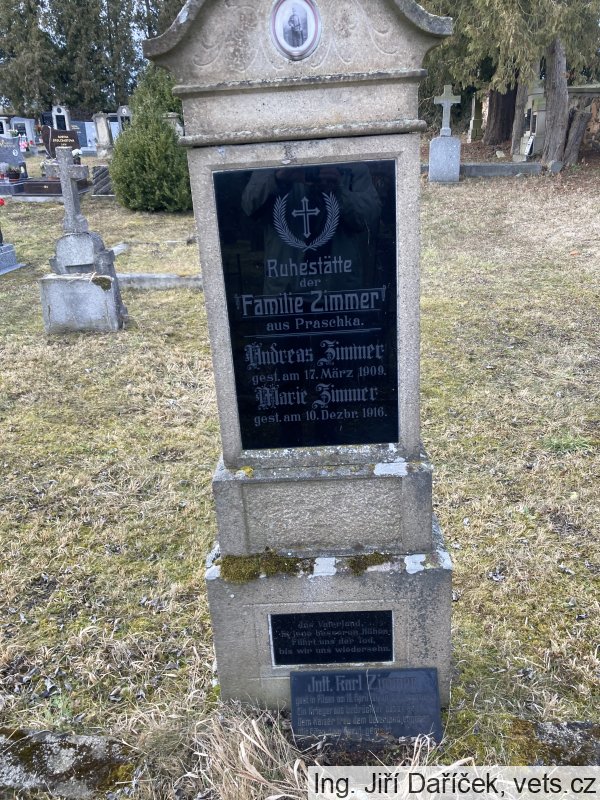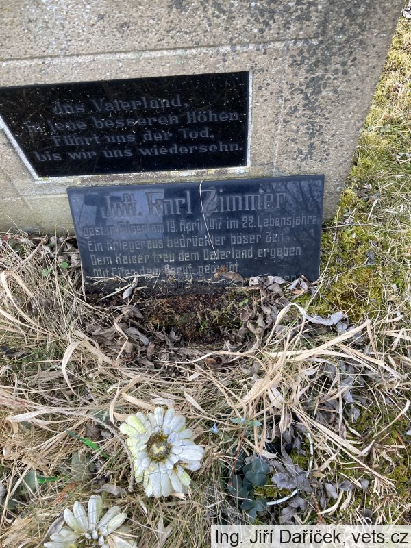 Karl Zimmer 1895 Pražka okr. Stříbro, pěšák pěšího pluku 35, ve věku 22 roků zemřel 19.4.1917 v Plzni, TBC
