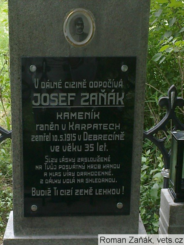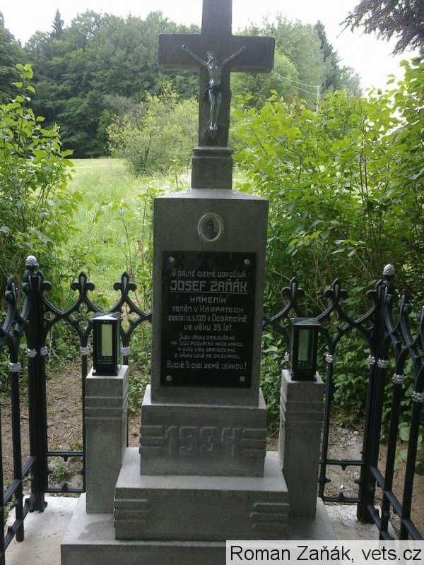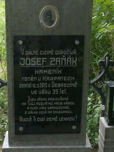Josef Zaňák, který zemřel v lazaretu v Debrecíně v roce 1915. Pohřben je a desku má společně s ostatními vojáky přímo v Debrecíně na vojenském hřbitově. Blízko jeho domu na jeho pozemku postavil jeho syn v roce 1934 tento pomník.