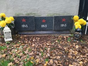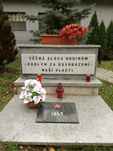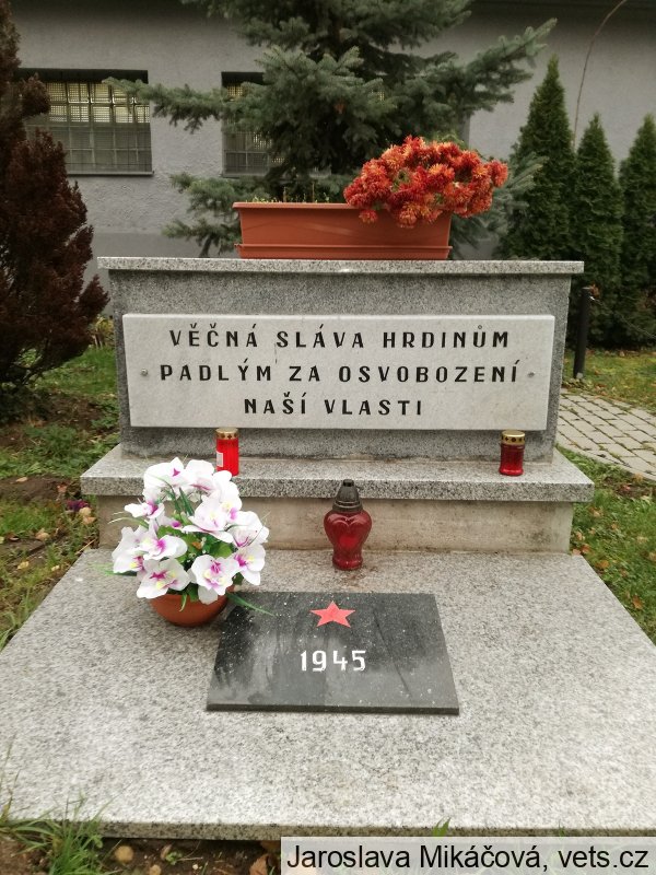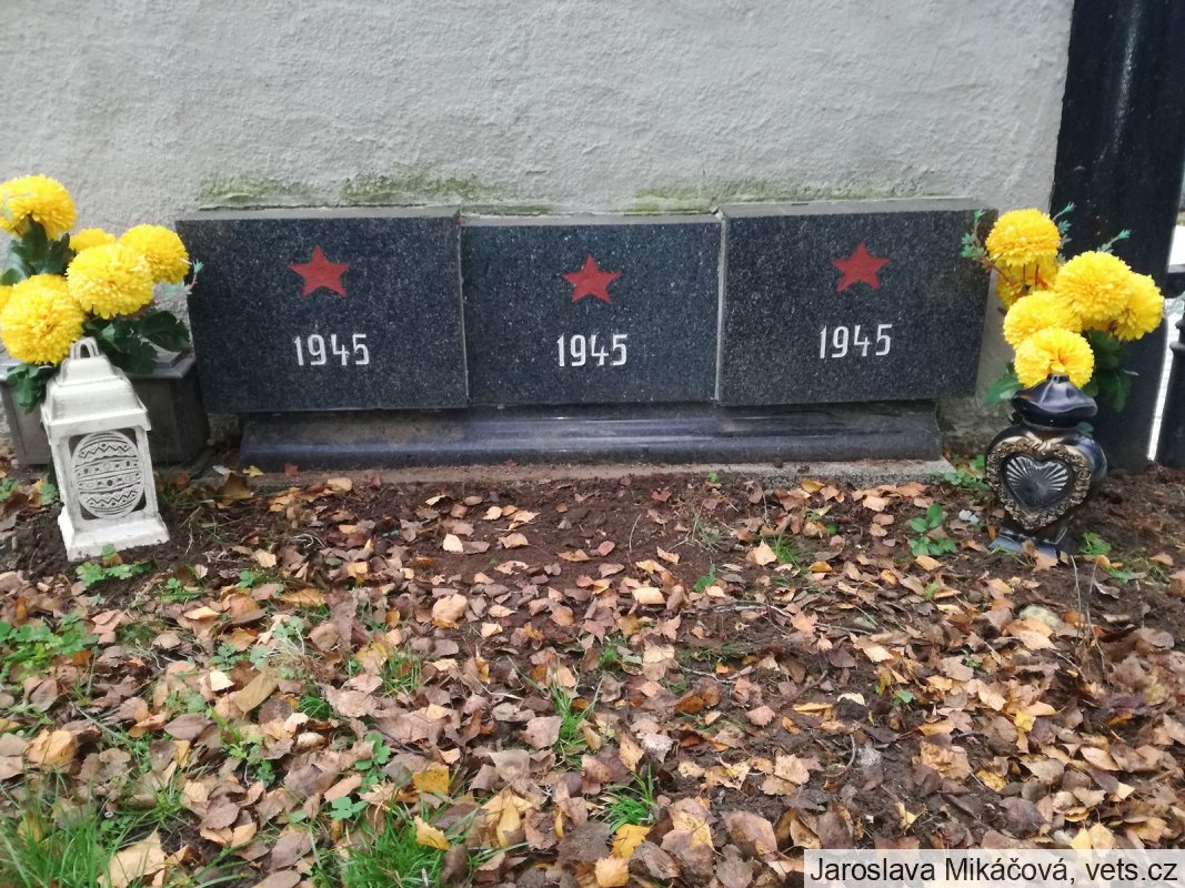 V blízkosti pomníku (u brány hřbitova) jsou ještě tři stejné desky s pěticípou hvězdou a nápisem 1945. Dle vyjádření starostky obce Jaroslavy Mikáčové (27.11.2019) byly tyto dříve na různých místech obce, pravděpodobně tam, kde vojáci padli. Po roce 1989 byly přeneseny k pomníku osvoboditelů na hřbitov (viz fotografie v CEVH) a v současnosti jsou nainstalovány kousek od něj - u brány.