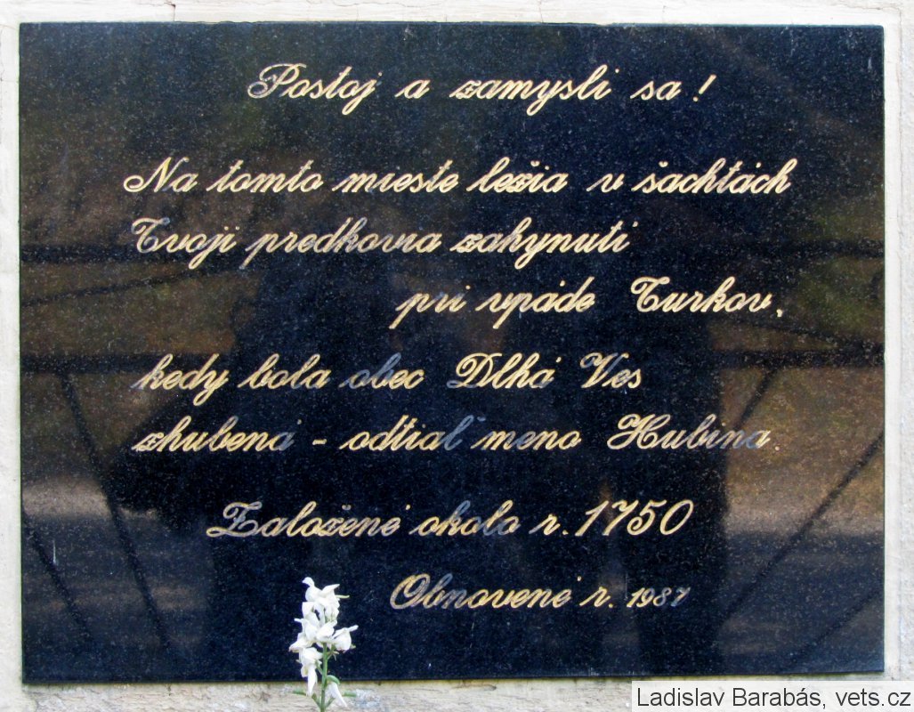 Umístění: Hubina, vľavo od kostolaNápis: