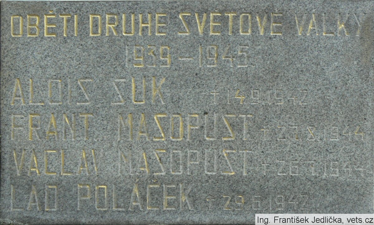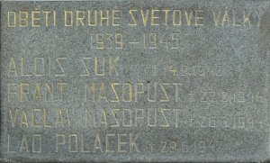 Alois Suk, truhlář, zatčen 1942, vězněn v Drážďanech, pak v Bautsenu, zemřel 14.9.1942 ve věku 38 let.