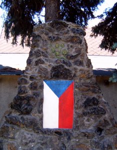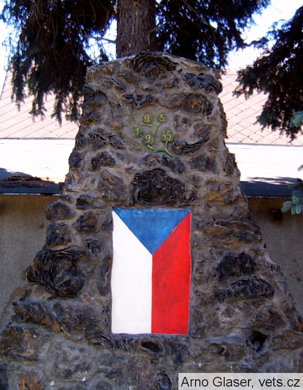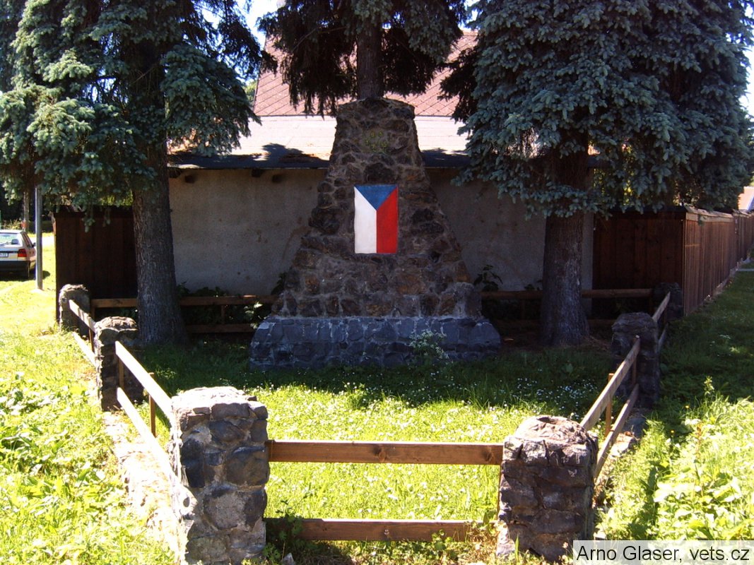 patrně se jedná o přebudovaný pomník 1. světové války. Místo desky se jmény je čs. vlajka.