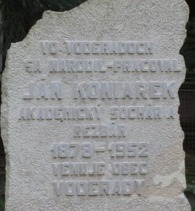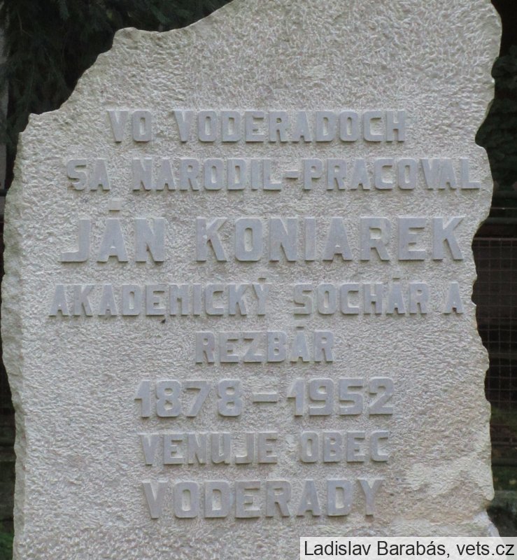 Ján Koniarek (30.1.1878 Voderady – 4.5.1952 Trnava) sochár. V roku 1912 bojoval za oslobodenie Srbska spod tureckej nadvlády v srbsko-tureckej vojne. V I. svetovej vojne bol ranený, omrzli mu nohy a museli mu amputovať niektoré prsty.