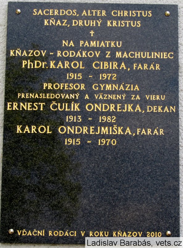 Karol Cibira bol prenasledovaný a odsúdený za vieru na sedem rokov väzenia. Narodil sa v Machulinciach a tu je aj pochovaný.