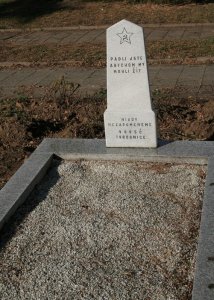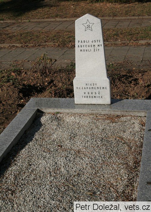 Zde odpočívají vojáci Rudé armády padlí v boji proti Němcům-nepřátelům svobody.