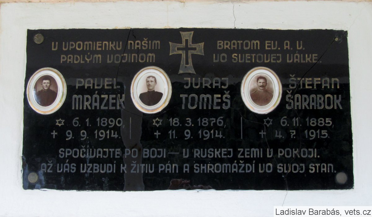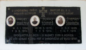 PAVEL MRÁZEK *6.1.1890, †9.9.1914. JURAJ TOMEŠ *18.3.1876, †11.9.1914. ŠTEFAN ŠARABOK *6.11.1885, †4.7.1915.