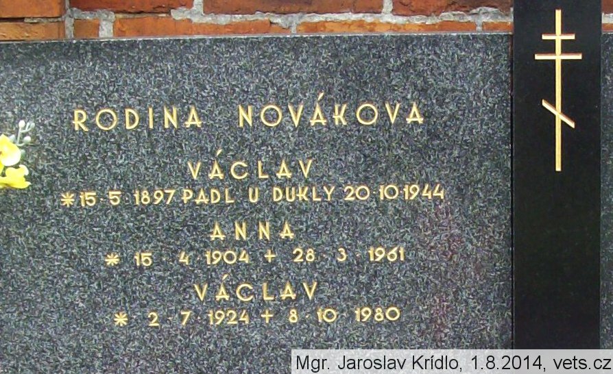 Novák Václav, *2.7.1924, místo narození Moldava, Volyň, národnost česká, kmenové číslo 11.823/M, datum a místo odvodu 19.03.1944, Rovno, číslo protokolu 01/11/607-Rovno,