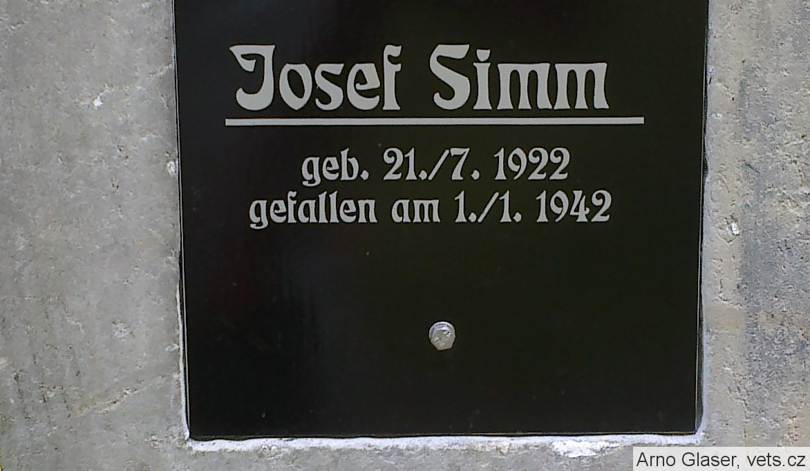 Josef Simm: hodnost: Gefreiter, padl Krym, pohřben patrně jako neznámý voják Sevastopol - Gončarnoje.