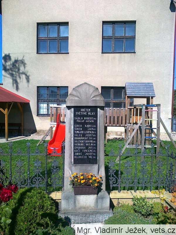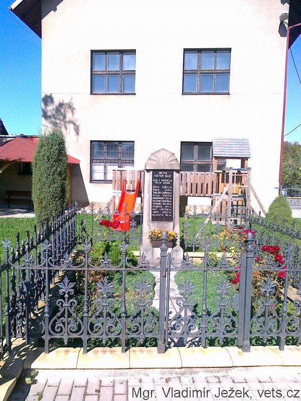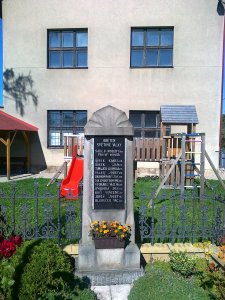 Umístění: Volavec, u bývalé školy č.p.42 (směr Svatoňovice)Nápis: