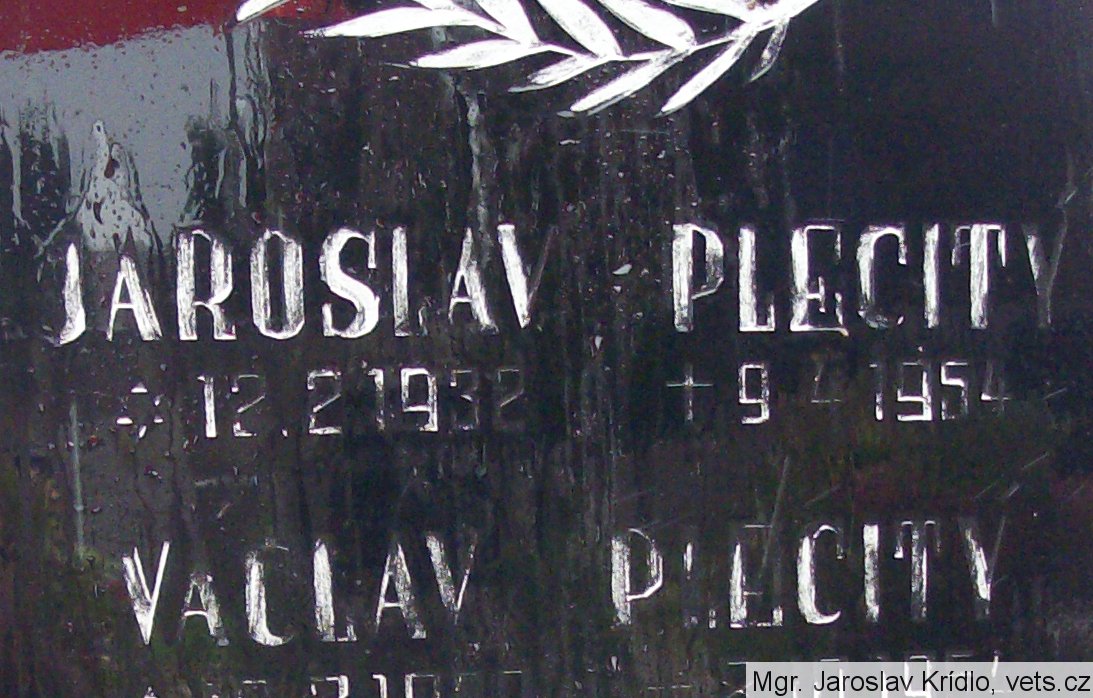 Pilot por. Jaroslav Plecitý zahynul 9.4.1954 při srážce letadel u obce Domousnice, okr. Mladá Boleslav. Ve druhém letounu pak zahynul por. Zbyněk Lukavský. Piloti Plecitý a Lukavský tvořili dobře slétanou dvojici u 7. leteckého stíhacího pluku umístěného na letišti Mladá (nazývaného taky Boží Dar nebo Milovice). Toho dne letěli jako číslo tři a číslo čtyři ve čtyřčlenném roji, se kterým jeho vedoucí vlétl v těsné sestavě a s vypnutými umělými horizonty do mraku. Po vylétnutí roje z mraku dva letouny chyběly. Po srážce v mraku se Jaroslav Plecitý katapultoval, ale padák se mu pro malou výšku neotevřel.