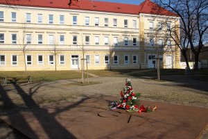Umístění: Hustopeče, Masarykovo náměstí, před budovou SOŠ a SOU, č.p. 1