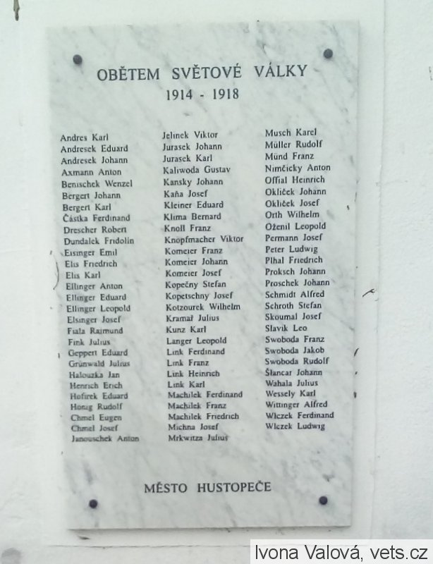 Andres Karl, Andresek Eduard, Andresek Johann, Axmann Anton, Benischek Wenzel, Bergert Johann, Bergert Karl, Částka Ferdinand, Dreschert Robert, Dundalek Fridolín, Eisinger Emil, Elis Friedrich, Elis Karl, Ellinger Anton, Ellinger Eduard, Ellinger Leopold, Elsinger Josef, Fiala Raimund, Fink Julius, Geppert Eduard, Grünwald Julius, Halouzka Jan, Henrich Erich, Hofirek Eduard, Honig Rudolf, Chmel Eugen, Chmel Josef, Janouschek Anton