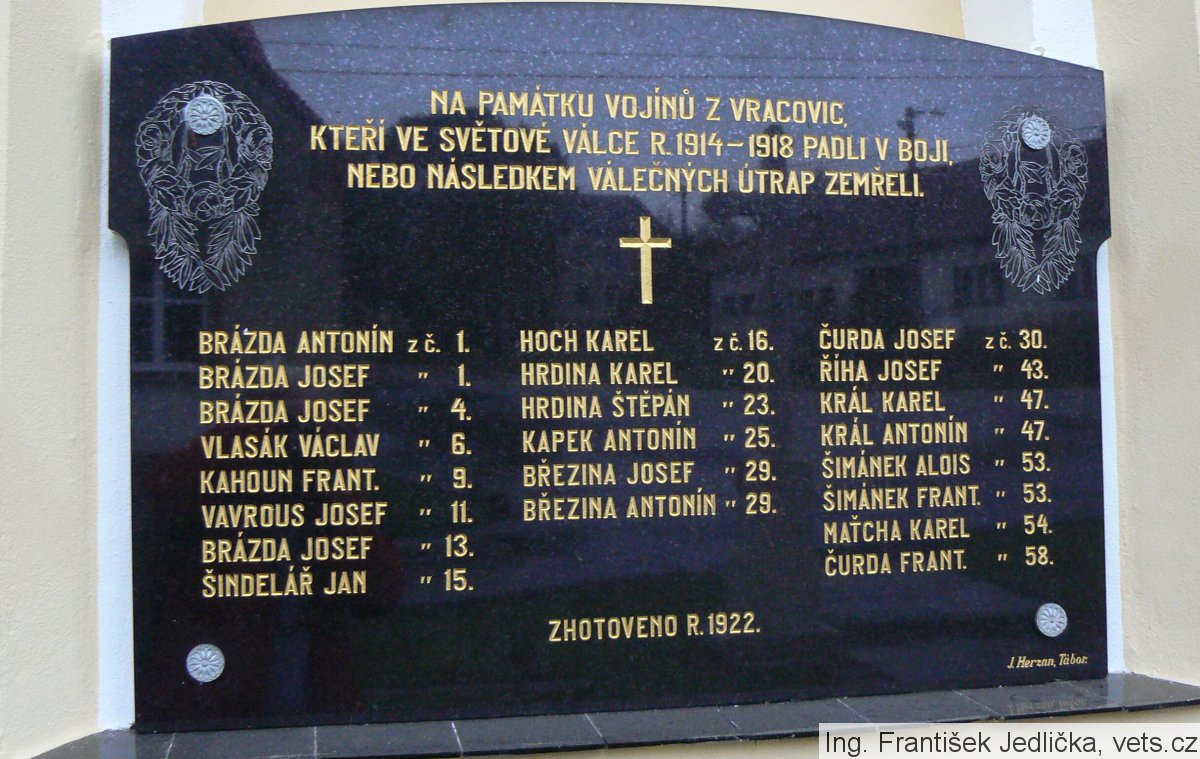 NA PAMÁTKU VOJÍNŮ Z VRACOVIC,
