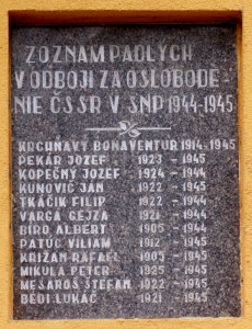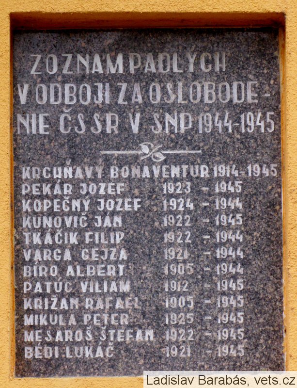 KRCHŇAVÝ BONAVENTUR 1914-1945, PEKÁR JOZEF 1923-1945, KOPEČNÝ JOZEF 1924-1944, KUNOVIČ JÁN 1922-1945, TKÁČIK FILIP 1922-1944, VARGA GEJZA 1921-1944, BÍRO ALBERT 1905-1944, PATÚC VILIAM 1912-1945, KRIŽAN RAFAEL 1905-1945, MIKULA PETER 1925-1945, MESAROŠ ŠTEFAN 1922-1945, BÉDI LUKÁČ 1921-1945