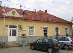 Umístění: Veľké Zálužie, Obecná 955, na budove Obecného úraduNápis: