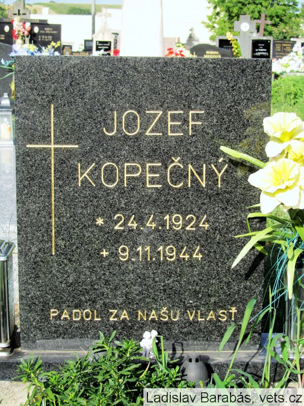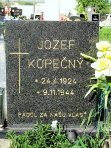 Jozef Kopečný je uvedený na pamätnej tabuli padlým v SNP